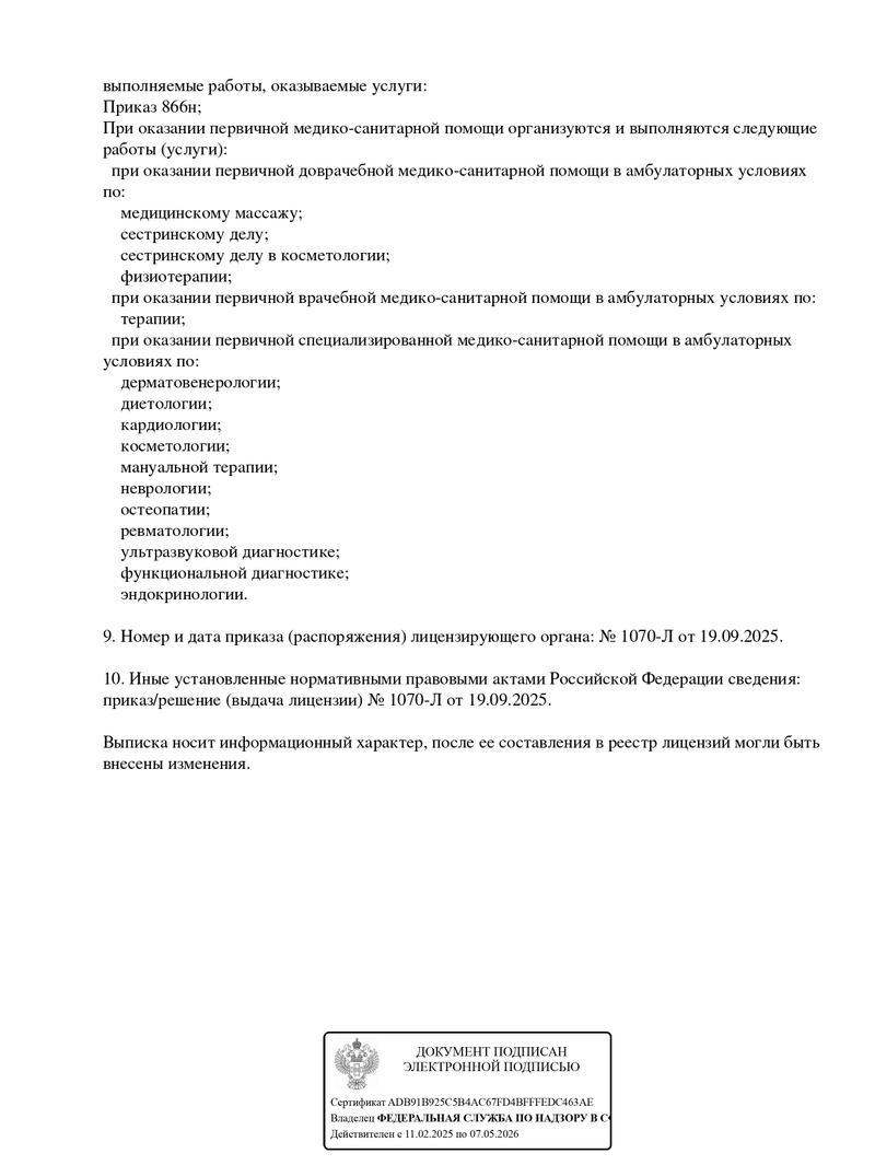 Проводит диагностику и лечение гастрита, язвы желудка, дисбактериоза, гепатита, диареи, панкреатита, эзофагита, метеоризма, колита, запора и других заболеваний желудочно-кишечного тракта.