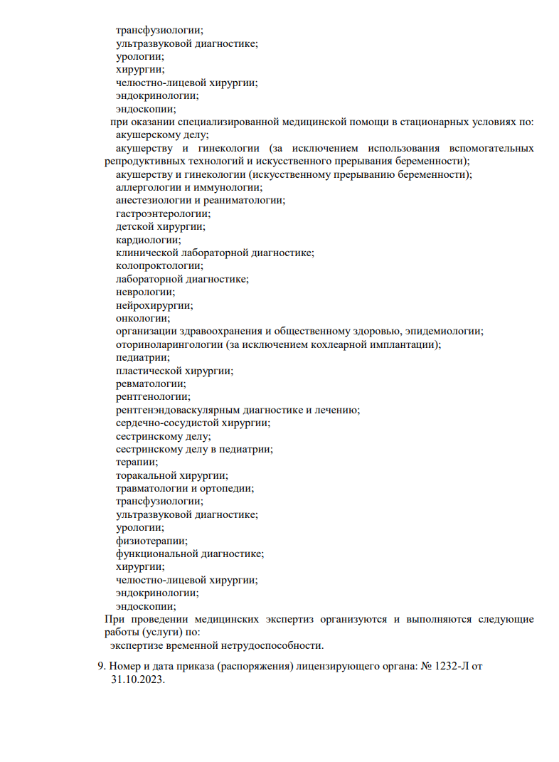 Специализируется на диагностике и лечении трахеита, фарингита, глухоты и тугоухости, гайморита, ангины (тонзиллита), ларингита, ринита, отита и других заболеваний уха и верхних дыхательных путей.